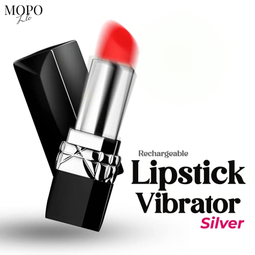 MOPO LLC Bullet Lipstick G Spot Vibrator - Lipstick Shaped Tip with 10 Vibration Modes Discreet Pocket Womens Vibrator for Her, Rechargeable Soft Powerful Vibrating Adult Toy Silver